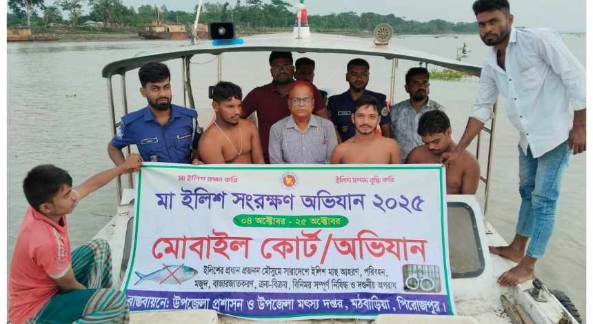 মঠবাড়িয়ায় সরকারি নিষেধাজ্ঞা অমান্য করে ইলিশ ধরায় ৩ জেলেকে ৪৫ হাজার টাকা জরিমানা