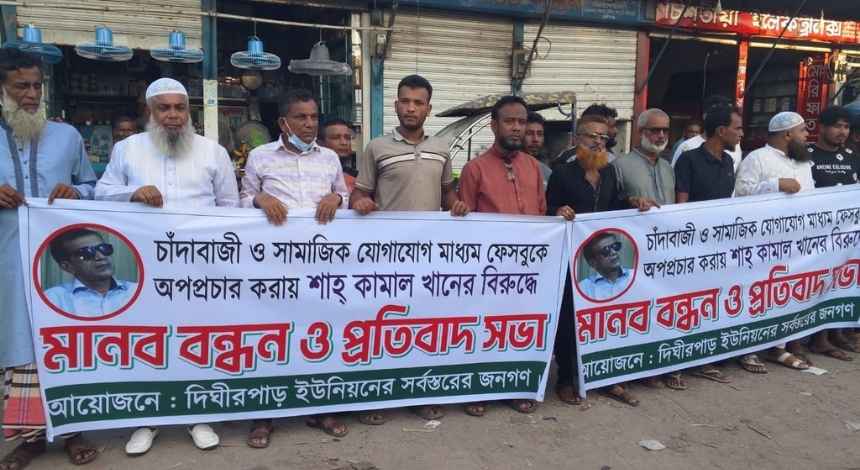 মুন্সীগঞ্জে চাঁদাবাজি ও অপপ্রচারের বিরুদ্ধে মানববন্ধন