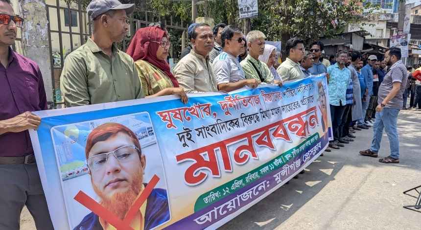 মুন্সীগঞ্জে সাংবাদিকদের বিরুদ্ধে দায়ের করা মিথ্যা মামলার প্রতিবাদে বিক্ষোভ ও মানববন্ধন কর্মসূচি পালন করা হয়েছে। একইসঙ্গে অভিযুক্ত ঘুষ গ্রহণকারী কর্মচারীর বিরুদ্ধে ব্যবস্থা গ্রহণ এবং মামলা প্রত্যাহারের দাবিতে প্রশাসনকে সাত দিনের আলটিমেটাম দিয়েছেন জেলার সংবাদকর্মীরা।