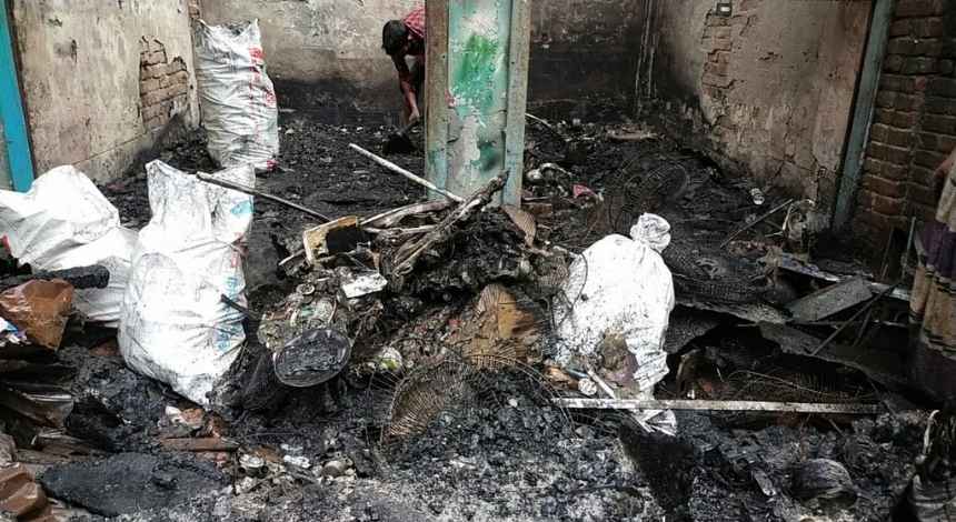 স্থানীয় সূত্রে জানা যায়, ভোররাতের দিকে বাজারের একটি দোকানে আগুন দেখতে পান এলাকাবাসী। মুহূর্তের মধ্যেই আগুন আশপাশে ছড়িয়ে পড়ে এবং এতে মো. সোলায়মান হাওলাদারের ফলের দোকান, এনায়েত হোসেনের ওষুধের দোকান এবং মিজানুর রহমানের ইলেকট্রনিক্স দোকান পুড়ে ছাই হয়ে যায়। পাশাপাশি একটি মোটরসাইকেলও সম্পূর্ণভাবে পুড়ে গেছে।