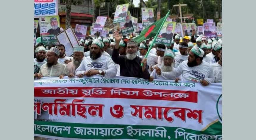 ২৪ জুলাই-আগস্ট ছাত্র-জনতার গণঅভ্যুত্থানে স্বৈরাচারী শেখ হাসিনার পতনের প্রথম বর্ষপূর্তি ও জাতীয় মুক্তি দিবস উপলক্ষে পিরোজপুর জেলা জামায়াতে ইসলামী এক গণমিছিল ও সমাবেশ আয়োজন করেছে। মঙ্গলবার সকাল ১০টায় পিরোজপুর নতুন বাসস্ট্যান্ড সংলগ্ন সাঈদী ফাউন্ডেশন থেকে মিছিলটি শুরু হয়ে শহরের বিভিন্ন সড়ক প্রদক্ষিণ করে টাউন ক্লাবে এসে সমাবেশে পরিণত হয়।