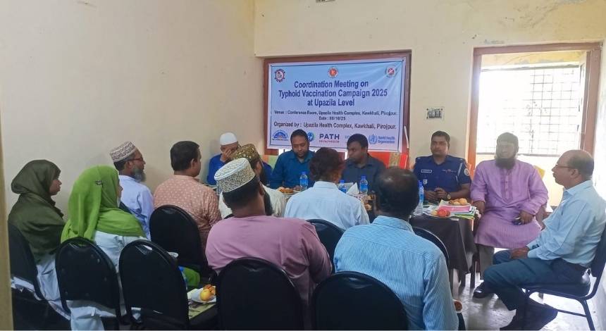 পিরোজপুরের কাউখালী উপজেলায় টাইফয়েড টিকাদান ক্যাম্পেইন ২০২৫ উপলক্ষে উপজেলা পর্যায়ে কো-অর্ডিনেশন সভা অনুষ্ঠিত হয়েছে।